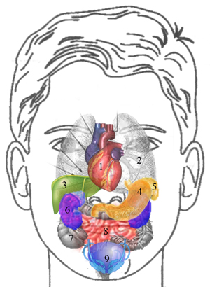 Afbalancering Når det værst belastede organ er fundet, bearbejdes den pågældende zone samt dens partner, f.eks. lunge og tyktarm. Behandlingen består af tryk og træk, der er kortere og mere dybtgående. Herefter er der flere afbalanceringsmuligheder i både ansigtet og ude på kraniet. |