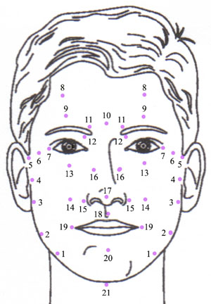 Punkter Punkterne har sammenfald med kroppens energibaner - meridianerne. Punkterne stimuleres med et fast, cirkelroterende tryk 8-12 gange for hvert punkt. "Grus" i punkterne indikerer en mulig ubalance og sammenholdes med fundet i de indianske zoner. |